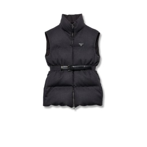 Prada Belted Down Padded Gilet Dark Grey For Women