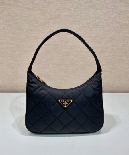 Contenitore Maniglia Tessutu Quilted Shoulder Bag made quilted lightweight , this bag features a zip top closure, a main compartment, a single top handle, and is decorated with the iconic metal triangle logo