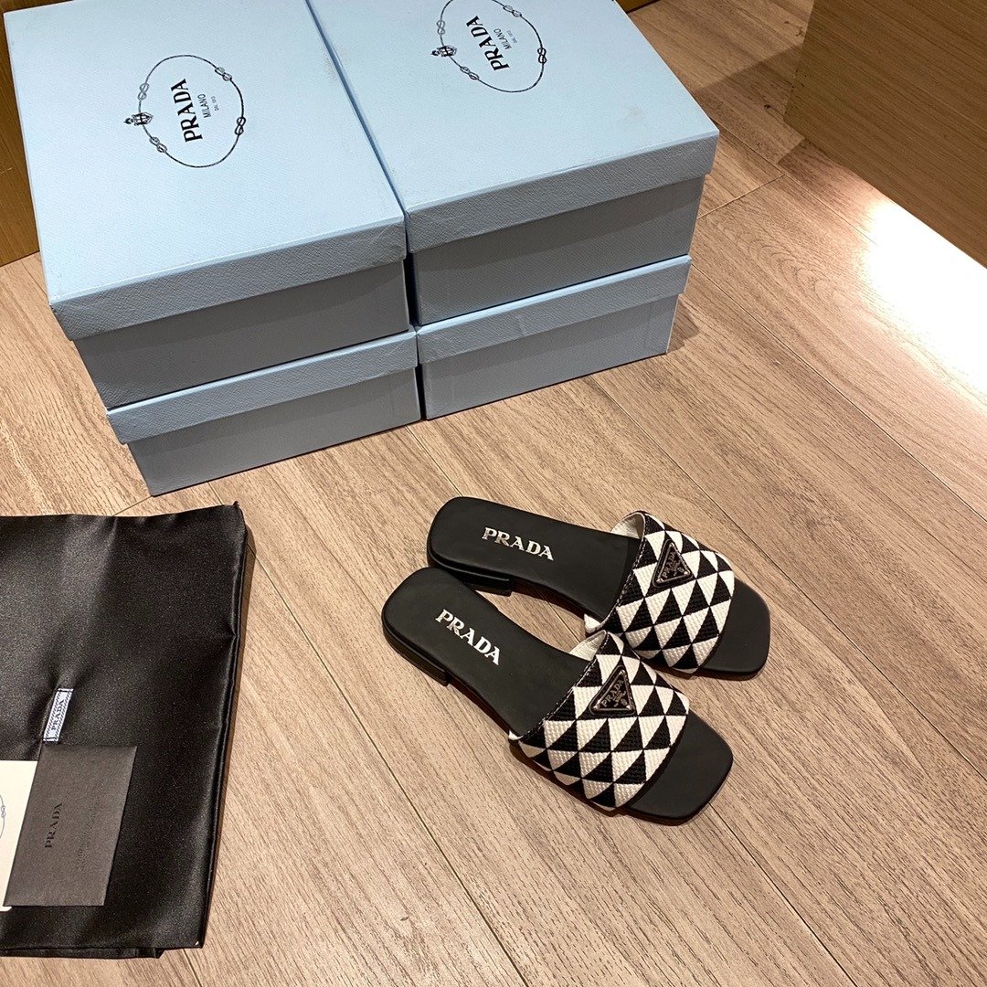 Prada Embroidered Fabric Slides Black/White For Women 0.4in/10mm PRD