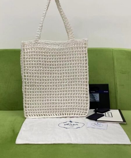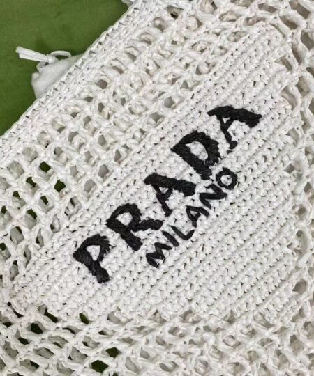 Prada Raffia Tote Bag White For Women, Women’s Bags 14.9in/38cm 1BG393_2A2T_F0009_V_OOO