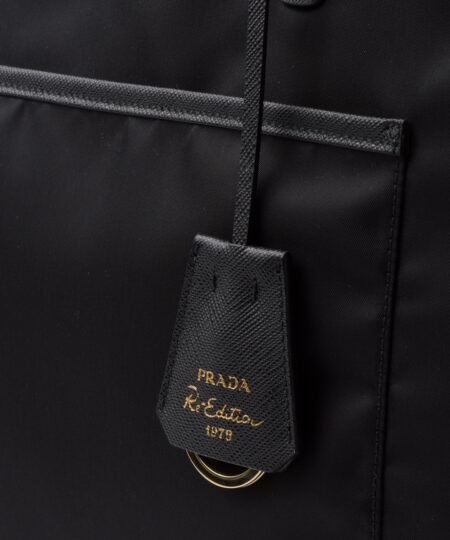 - This tote bag with timeless charm, a re-edition of an archive design, sums up Prada codes in a sophisticated and pragmatic silhouette. The style with clean lines is made of Re-Nylon, an innovative regenerated nylon fabric that is the sustainable evolution of a distinctive material of the brand. Elegant Saffiano details complete the roomy accessory decorated with the iconic signature touch of the enameled metal triangle logo.