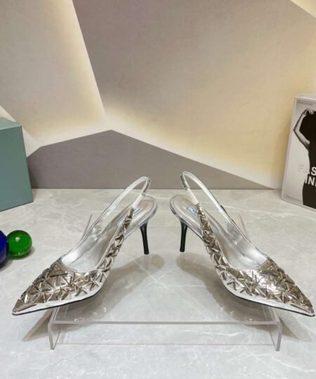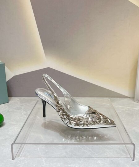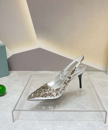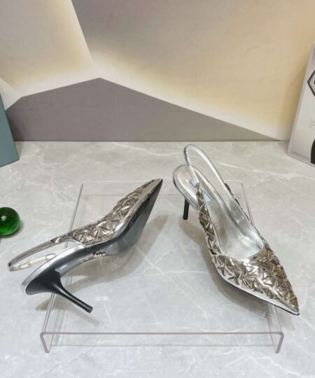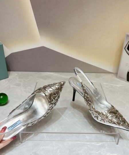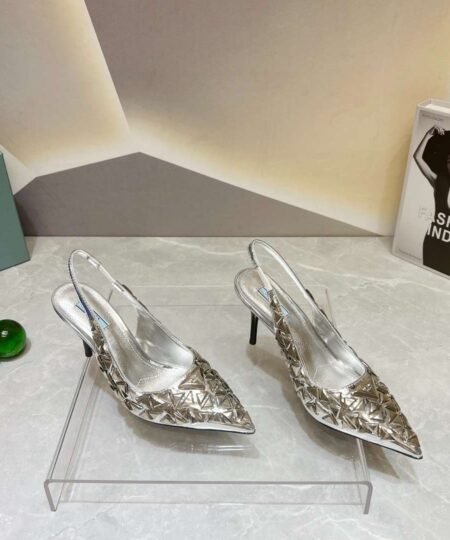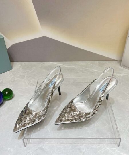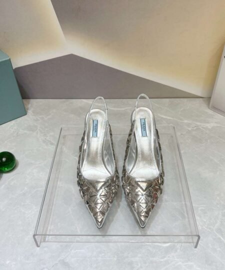 - Prada’s iconic flower shape adorns these strap pumps with a seductive beauty. Traditionally used for high-end classic footwear, since the ’90s, brushed has been reinterpreted in Prada collections on modern designs to create synthetic results that reflect the two sides of the brand