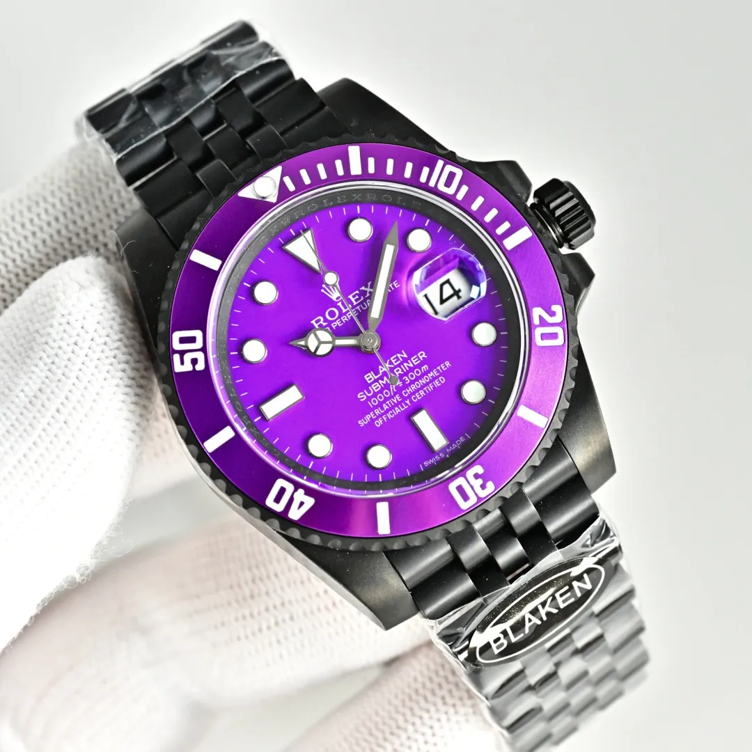 Rolex Blaken Daytona Submariner Purple Dial And Bezel Edition 40mm For Men