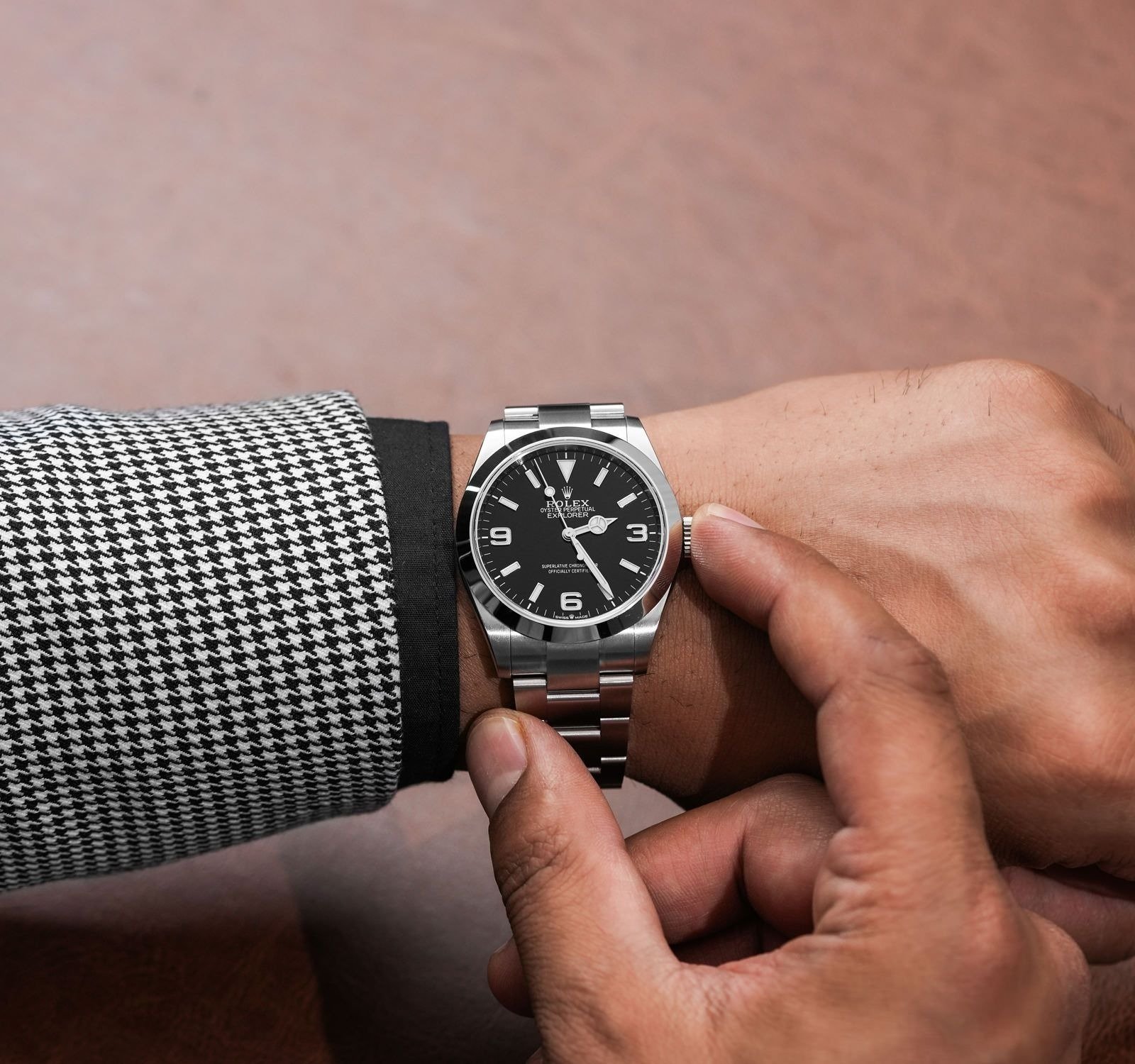 The Rolex Explorer 40 combines timeless elegance with iconic design. Featuring a refined dial accented by silver-toned hands and markers, this 40mm timepiece offers a bold yet sophisticated look.