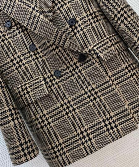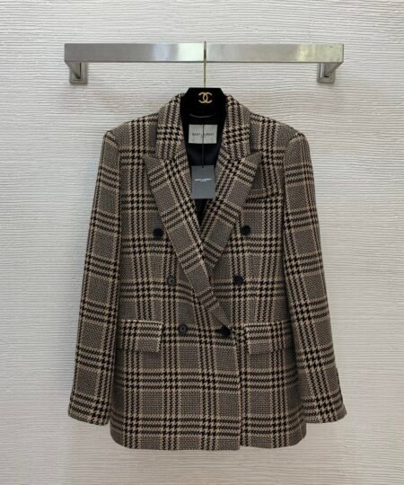 Saint Laurent Clothes – Houndstooth Check Blazer Black & Brown For Women