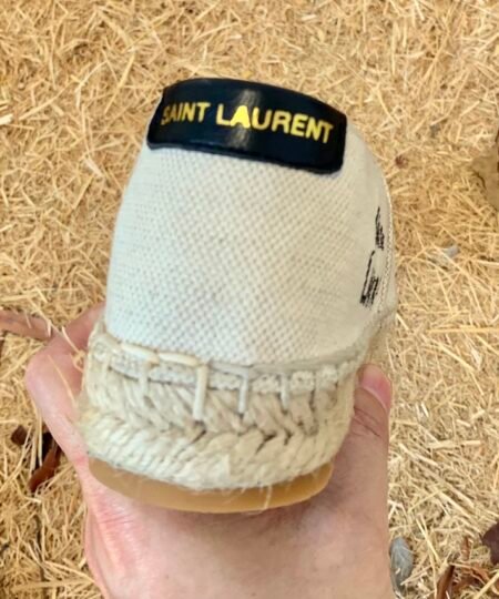 Espadrilles decorated with contrasting saint laurent embroidery on the side and a saint laurent paris embossed tab at the back.
