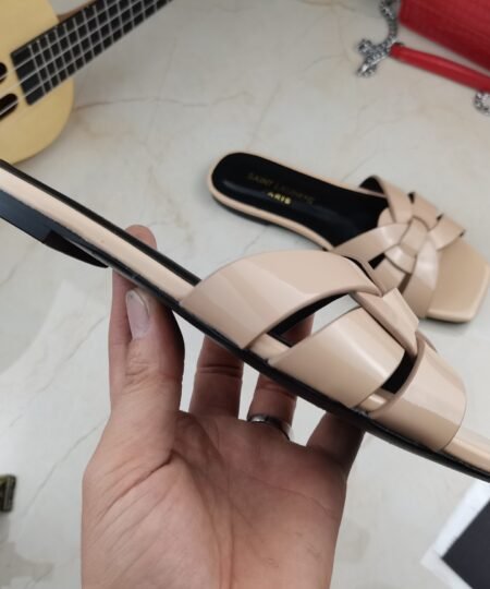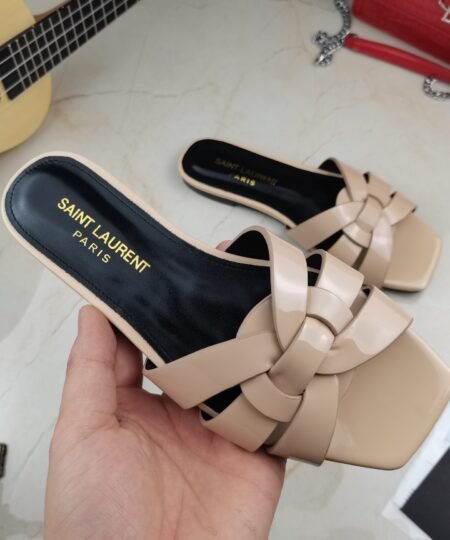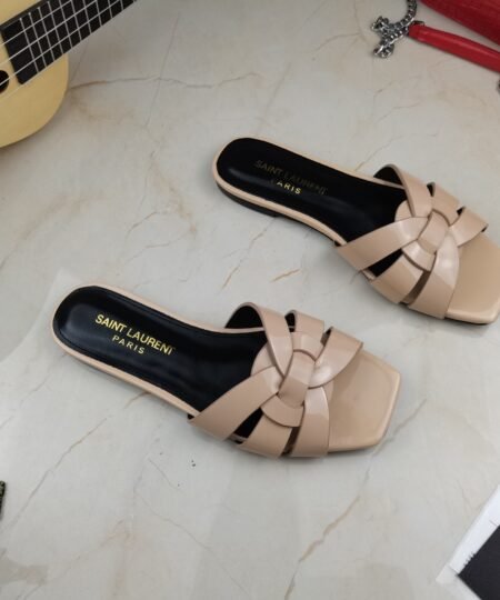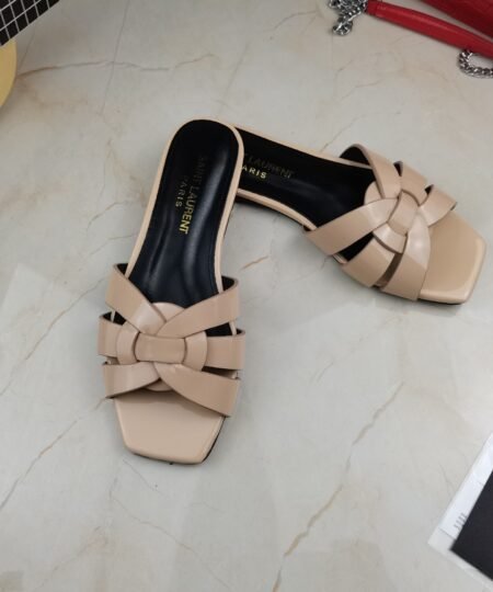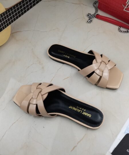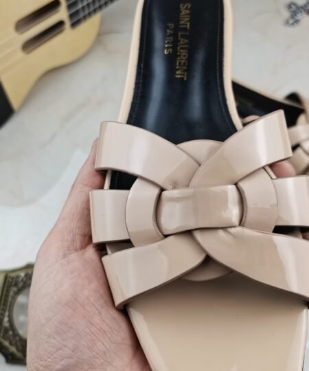 Saint Laurent Women’s Tribute Flat Mules Beige For Women YSL 571952B8I009935