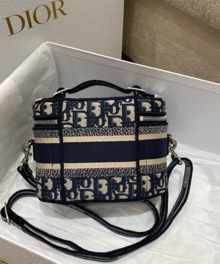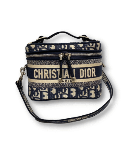 - The DiorTravel vanity case is offered in a fully embroidered Dior Jardin d’Hiver motif embellished with gold-tone metallic thread, offering a poetic and exotic interpretation of Mr. Dior’s wall tapestries. Enhanced by the ‘CHRISTIAN DIOR’ signature on the front, it is completed by a tonal embroidered removable and adjustable shoulder strap. The small vanity case embodies Dior’s savoir-faire, is the ideal travel companion and may be coordinated with other DiorTravel creations.