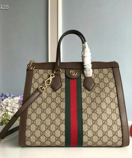 Gucci Ophidia GG Medium Tote Bag Beige/Ebony GG Supreme Canvas With Brown For Women 13in/33cm GG 524537 K05NB 8745