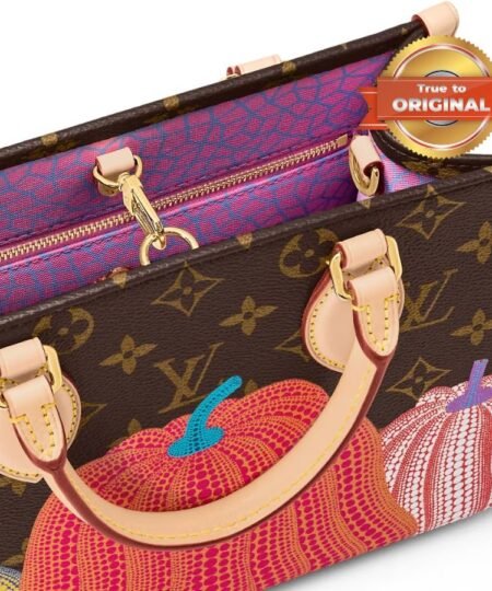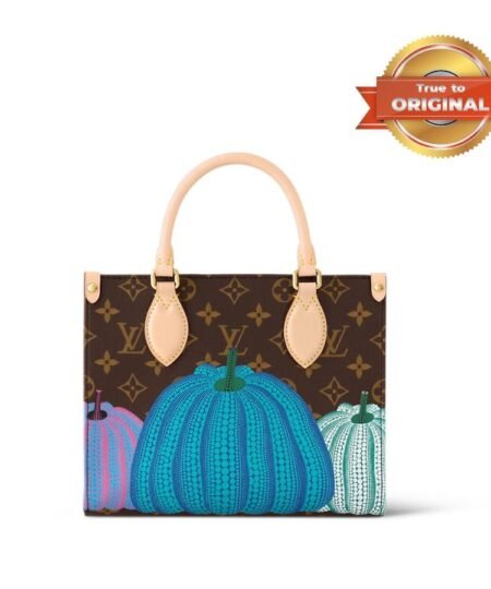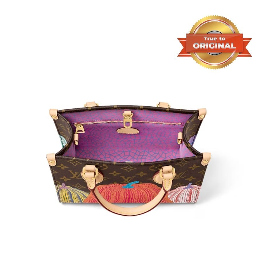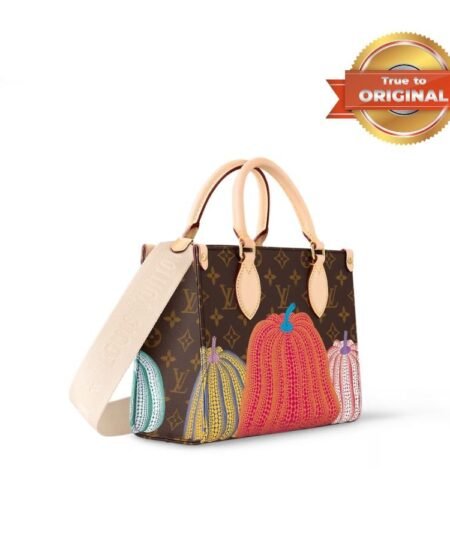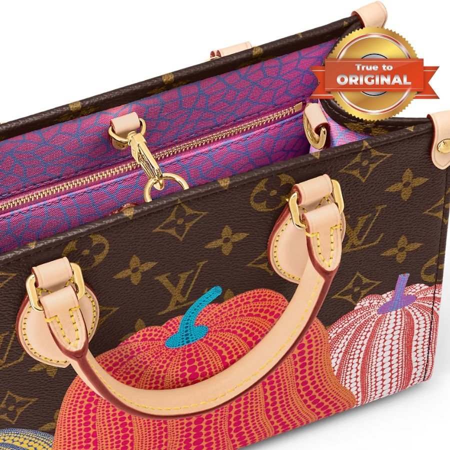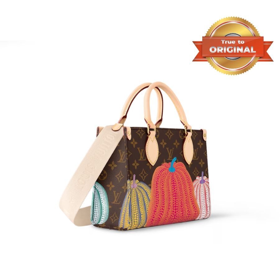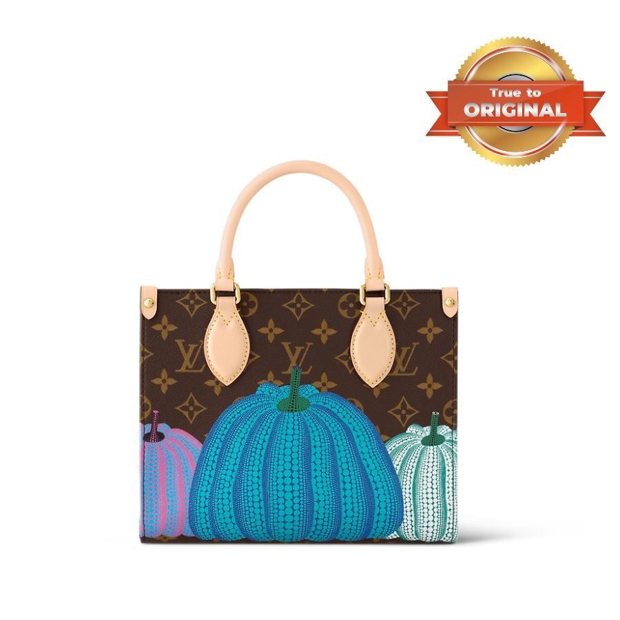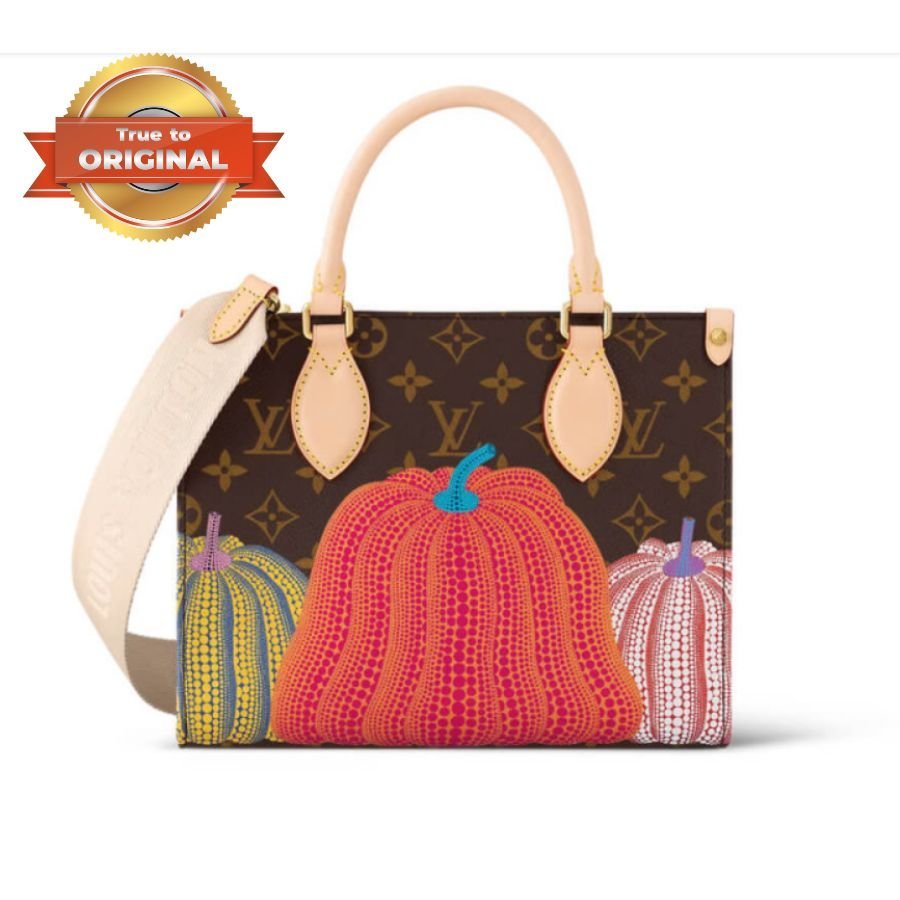- For the Louis Vuitton x Yayoi Kusama Collection, the LV x YK OnTheGo PM bag captures the spirit of the Japanese artist’s work with a unique and creative print. Kusama has made pumpkins a visual signature, an emblem of her irrepressible energy and enthusiasm. For this user-friendly bag, Monogram canvas is embellished with a series of pumpkins in warm colours. This bag also comes with a separate Pumpkin print coin purse on the strap.