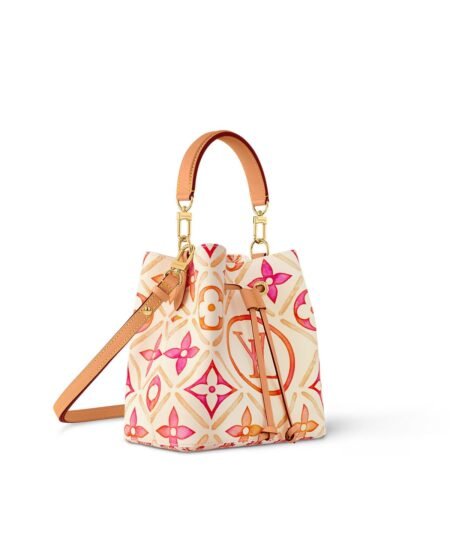 - This adorable little bucket bag, the Neonoe BB in Monogram Tiles coated canvas, looks as good carried by hand as worn on the shoulder. The Monogram motif, treated in subtle nuances of pastel, features the LV Circle in the center of the bag. The printed textile lining pairs perfectly with the canvas pattern.