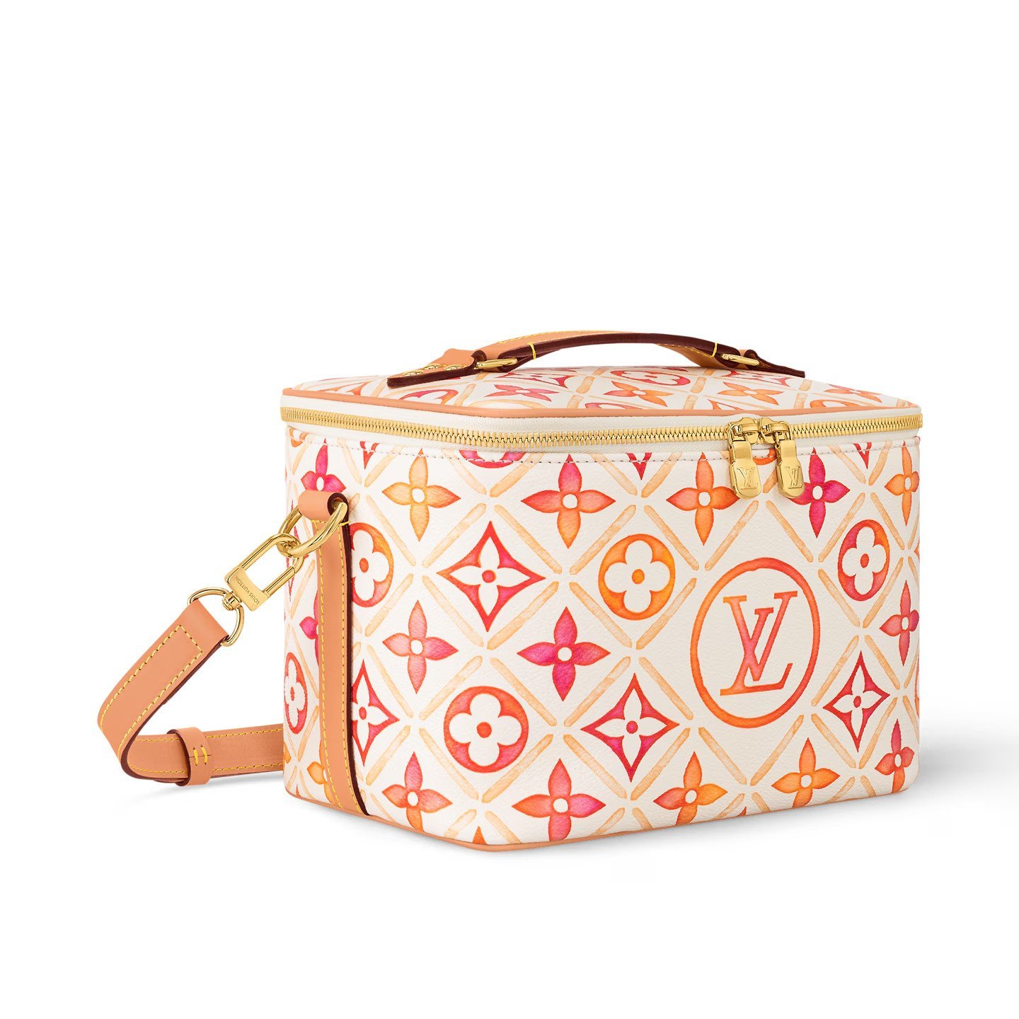 - Picnic in style with the Small Coolbag, which comes in canvas printed in shaded raspberry-pink with the Monogram Flower Tiles motif of the LV By The Pool collection. A top handle and removable, adjustable shoulder strap are practical features, as is the double-zip closure. An isothermal lining ensures food and drink are kept cool and fresh on the go.