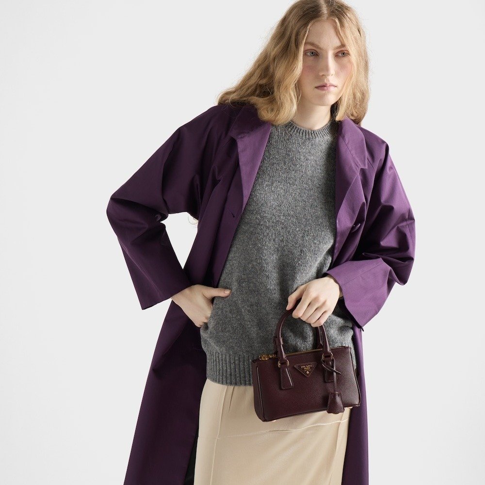 The Prada Galleria bag with an elegant, timeless design reflects the many facets of the Prada identity. The iconic style in a mini version with a new, elongated silhouette has a detachable shoulder strap for crossbody wear. The emblematic crosshatch texture of Saffiano leather gives the bag a distinctive, versatile character.
