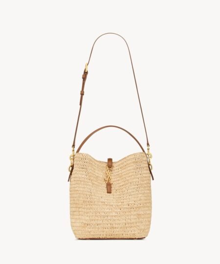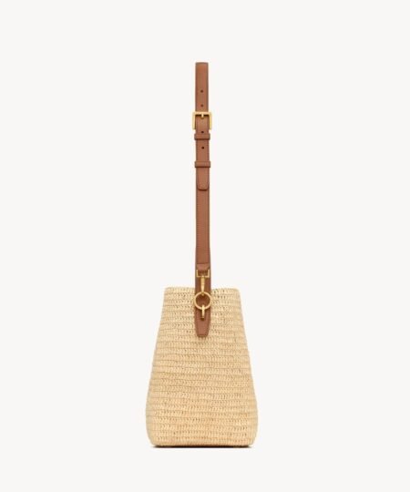 [True-to-ORIGINAL] Saint Laurent Le 37 In Woven Raffia And Vegetable-Tanned Beige For Women 9.8 Inches/ 25 Cm 773991GAAD72080