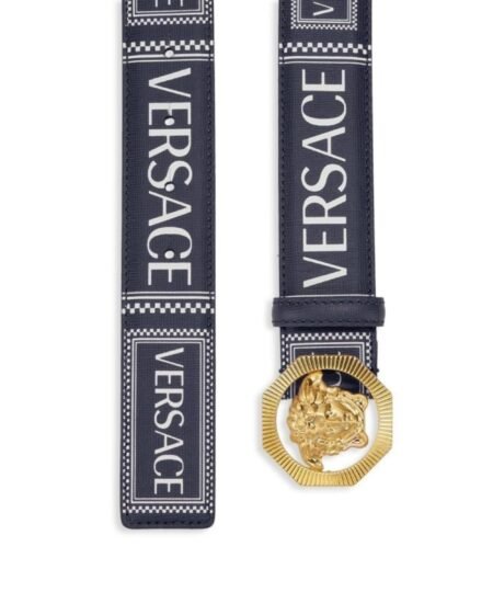 Versace Medusa Buckle Logo Leather Belt Navy 4cm